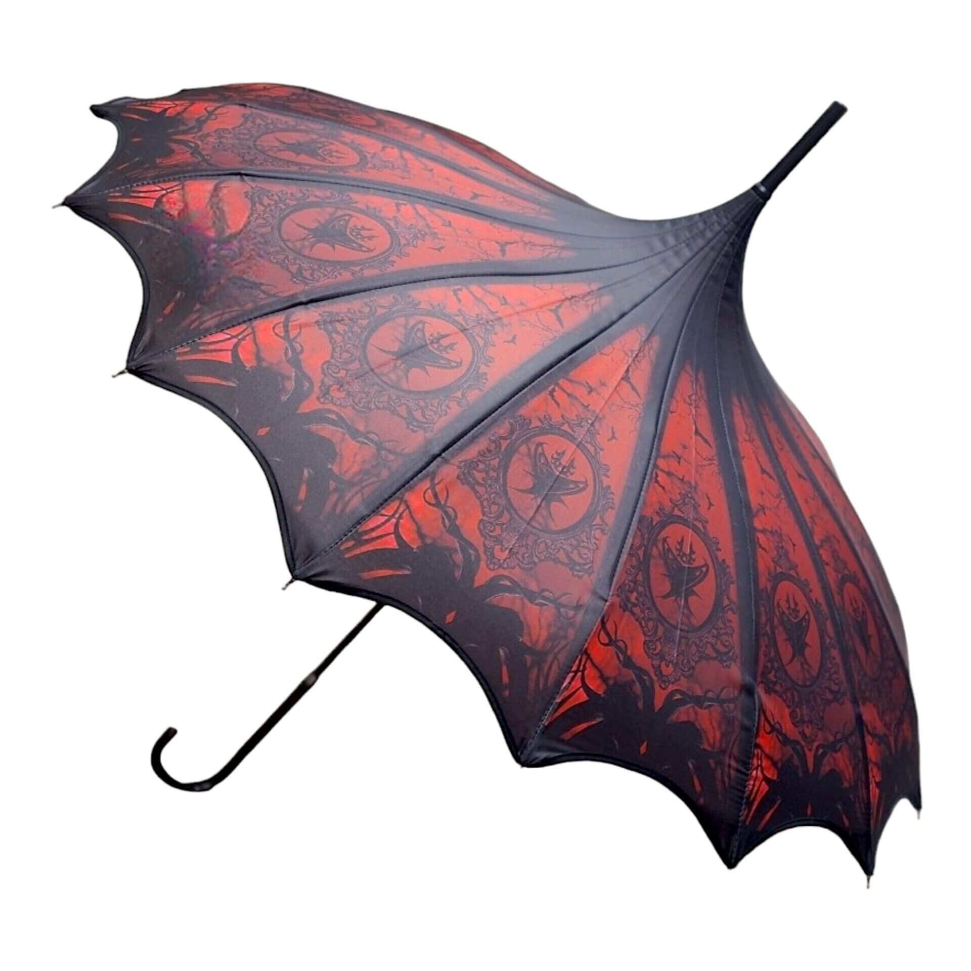 - 🦇 EMBRACE THE DARKNESS: Custom-printed RED RITUAL pagoda umbrella, exclusively designed by Gothic Rebel for true vampire enthusiasts
