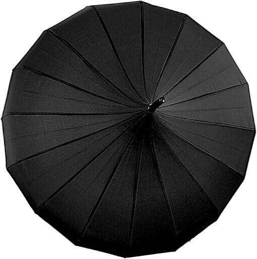 Whether you’re accessorizing for Halloween or expressing your goth style year-round, this umbrella is your perfect ally. Against a white backdrop, it stands out as an artifact of night – sleek, black, and dramatic. The traditional J-handle promises comfort in your grip and ease when hung by your side.